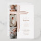 Celebrate a meaningful milestone with our Elegant Minimal Baptism Foil photo Invitation, designed by Moodthology Papery. Featuring our original hand-drawn sketch cross in gold foil placed in the top left corner, behind the cross are three photos for you to replace with your own photos. This invitation showcases a clean, modern layout with all event details elegantly displayed in the white space along the right-hand side. The reverse side features our coordinating hand-drawn cross illustration, creating a cohesive and refined religious stationery piece. Perfect for baptisms, christenings, dedications, and other faith-filled celebrations, this invitation blends contemporary minimalism with timeless Christian symbolism. Design and illustration by ©Moodthology Papery.