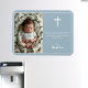An elegant Baptism dusty blue design that you can customize with your details and photo.