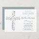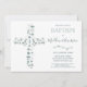 This elegant Baptism, or Christening, invitation features an illustrated floral cross that resembles embroidery. The cross features silver (simulated foil) accents with green, teal and white colours (gender neutral tones; ideal for boy and/or girl). The background is white, but can be changed to any colour of your choice. The back of the card features a matching silver stitching pattern - again, the background colour can be changed to your liking. The word "Baptism" is in a modern, stylish font. Customize the the remaining text to your liking for your own event. A simple and elegant way to invited friends and family to your child's special religious sacrament.