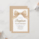 Celebrate the sacred event of your child’s baptism with this elegant invitation featuring a beige bow and a cross. The soft, neutral tones set a serene tone for your special occasion. Perfect for those looking for a classic, sophisticated design to commemorate this important milestone.
