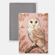 Elegant Barn Owl Pink and Gold Floral Magnet