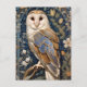 Elegant Barn Owl William Morris Inspired Floral Postcard