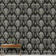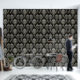 A luxurious and ornate damask pattern featuring intricate white and gold floral motifs on a black background. The design exudes a classic and sophisticated aesthetic, commonly found in vintage wallpapers, textiles, and high-end decor.