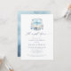 This elegant coastal wedding rehearsal dinner invitation features a watercolor beach wedding crest with monogram initials of the bride and groom, and the wedding date on the banner of the crest.