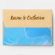 Modern coastal wedding invitation featuring soft blue ocean waves and sandy beige watercolor textures. Perfect for beach weddings, seaside ceremonies, summer weddings, and destination celebrations. Elegant script typography with a romantic aesthetic.