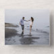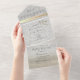 Simple, elegant, modern calligraphy, tropical beach wedding invitation with picture, ocean pattern and faux gold details.