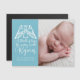 Un élégant ange est assis sur les paroles de Noël de la Sainte Nuit sur cette belle carte de vacances magnétique bleu bébé. Un frisson d'espoir, le monde fatigué se réjouit. Réjouissez-vous avec cette belle carte de faire-part de naissance religieuse avec une calligraphie magnifique et votre photo de nouveau-né sur le devant et le dos. Une magnifique carte de Noël pour bébé faire-part de naissance chrétien.