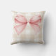 Elegant Beige Gingham with Pink Bow Accent Custom Throw Pillow