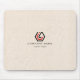 Elegant minimalistic style with stand-in logo. Light beige linen with a logo in red and black.