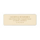 These return address labels feature a simple, elegant layout with centered text on a soft beige background. The design uses a muted gold or light brown color for the text, creating a subtle contrast that enhances readability while maintaining an understated sophistication. With clean lines and precise serif typography, these labels are perfect for formal occasions like weddings, offering a timeless and refined look. The minimalistic approach focuses entirely on clarity, making them ideal for those who appreciate classic style without unnecessary embellishments.
