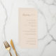 A minimal and modern tan wedding menu, designed with beautiful script lettering at the top of the card. Personalize with all of your wedding menu items.