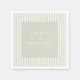This wedding napkin features a minimalist and elegant design with vertical stripes in light beige and white, framing a central pale green rectangle. The layout includes clean, modern typography with the names "Lauren" and "Benjamin" prominently displayed, along with a date, creating a balanced and sophisticated look. The muted color palette enhances the serene and refined mood, making it perfect for formal occasions. Its contemporary style blends simplicity with classic elements, ideal for couples seeking understated elegance on their special day.