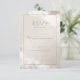 This elegant RSVP card features a soft, muted color palette of beige and cream with a watercolor wash effect, creating an ethereal and sophisticated atmosphere. The minimalist design includes a balanced layout with ample negative space, utilizing both serif and script fonts for a refined touch. Customizable fields allow guests to respond with options like "Happily Accepts" or "Regretfully Declines," making it perfect for formal events. The overall style conveys grace and anticipation, ideal for weddings or upscale gatherings.