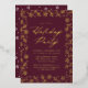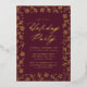 Elegant holiday party invitation with a border of gold foil snowflakes and pine branches on a berry purple background. "Holiday Party" is displayed in a gold foil calligraphy script with your party details shown below. The snowflake holiday party invitation reverses to display a beautiful snowflake pattern.