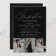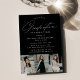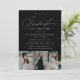 Invite guests to celebrate the grad with our elegant photo graduation party invites! The design features a modern calligraphy script with your graduation party details displayed in white lettering against a black background. The unique graduation party invites feature three photos in a row at the bottom of the design. The multi-photo graduation invite reverses to display a simple black and white diagonal stripe pattern.