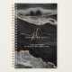 Personalized black agate, geode and marble planner with gold glitter sparkle and elegant calligraphy script monogram initials and name for a stylish or professional look. OPTIONS: The sample is shown in the 8.5x5.5" soft-cover style with gold wire--other option are available on the ordering page. ASSISTANCE: For help with design modification or personalization, colour change, resizing or transferring the design to another product or would like coordinating items, contact the designer BEFORE ORDERING via the Zazzle Chat MESSAGE tab below or email makeitaboutyoustore@gmail.com.