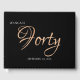 This 40th birthday guest book design is very elegant thanks to the striking golden script lettering against the classic black background. You can personalize the cover by adding the birthday girl's name and the date of her party. Our custom guest books are a wonderful way for friends and loved ones to share their best wishes and memories. These are the words that you will read through and treasure long after the party is over. Original Design Clare Swindlehurst (c)