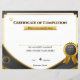 A modern and elegant certificate of completion featuring a black and gold professional design. Perfect for courses, training programs, workshops, business achievements, corporate recognition, and educational certifications. Ideal for schools, companies, coaches, and organizations looking for a classy and formal completion certificate.