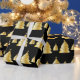 Stylish and modern Christmas wrapping paper, with a gold Christmas Tree design on a black background. Aqui Poppy has Christmas cards to complement this design in our store.