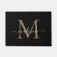 Elegant Black and Gold Custom Monogram Script Name Doormat