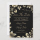 This elegant black wedding invitation set features luxurious floral designs in gold and silver. The intricate metallic flowers and leaves create a sophisticated and timeless look, ideal for formal and evening weddings. The deep black background enhances the rich details, making it a perfect choice for couples looking for a classic and refined invitation suite.