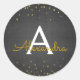 Elegant Black and Gold Foil Confetti Monogram Classic Round Sticker