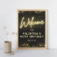 Elegant Black and Gold Glitter Neon Glow Welcome Poster