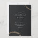 An elegant Happy Hour invitation design by Stacey Meacham featuring a black textural background and gold cocktail rings. Perfect for business or personal events.