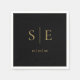 Elegant Black And Gold Monogram Date Minimalist Napkin