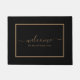 Elegant welcome Doormat with a gold script on a black background. Personalize with your family name or text.