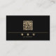 The back of the card continues the theme of black and gold elegance. A dedicated space showcases a gold QR code, offering a modern and efficient way for contacts to access your website or digital portfolio. Social media icons, rendered in gold, are often placed along the bottom, providing easy access to your online presence. Essential contact information, such as your website, email address, and a concise address, is presented in a legible gold font against the black background. The design maintains a consistent sense of modern luxury and digital connectivity.