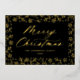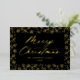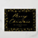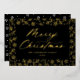 Elegant holiday card with "Merry Christmas" displayed in a gold foil calligraphy script with a gold foil snowflake and pine branch border on a black background. Personalize the front of the non-photo holiday card by adding your name and the year. The back of the modern holiday card features your custom message with a beautiful snowflake pattern.