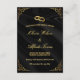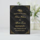 Featuring a rich satin black background with golden flourishes and wedding rings, this invitation radiates sophistication and romance.
