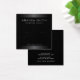 Elegant, square, black earring display card with gray satin gradient borders and template fields for your business information and custom logo.