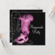 Elegant pink feather mask with black and pearl background masquerade party invitation template. This beautiful black and pink masquerade party invitation works well for a Quinceanera or sweet sixteen masquerade party, womans birthday masquerade party, Carnival or Mardi Gras masquerade party, masquerade prom invitation, or any other black and pink theme masquerade party and is easily customized for your event by simply choosing the "Customize it!" button to begin adding your event details, font style, font size & colour, and wording. Please note - all of the card and invitation designs you will find on Zazzle are printed graphics with no actual jewels, bows, raised, embossed, or added parts or pieces.