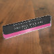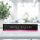 Elegant name plate with your name and title printed in white on a black background above a pink satin gradient.