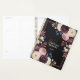 This sophisticated design showcases a stunning floral arrangement with rich plum, blush, cream, and navy blooms, framed by delicate foliage on a sleek black background. The personalized name and year add a refined touch, making it perfect for professionals, students, or anyone who loves timeless elegance. Ideal for organizing tasks, journalling, or planning with a luxurious aesthetic. A perfect combination of bold colours and classic style to elevate your daily organization.