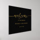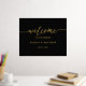 Welcome your guests to your wedding with this elegant black sign with real gold foil. Ability to change text to any other event. Design with beautiful modern hand written calligraphy details. 10" x 8" is simply our default size, you have the ability to choose from a great variety of size options. Same sign design also available in white. "IMPORTANT NOTE: This sign is in premium poster paper style, easy to frame or glue/staple to inexpensive MDF or foam board for display. Part of our "Real Foil Elegant Wedding and Events Signage" collection with a variety of coordinating products available. Dimensions of sign in demo photo with stand: 24" x 18"