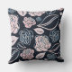 Elegant Black and Rose Gold Roses and Leaves Throw Pillow