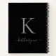 Chic Elegant Silver Monogram Script on a chic Black Spiral Notebook. Easy to customize with your own name and details. Perfect for your luxury lifestyle! Please contact us at cedarandstring@gmail.com if you need assistance with the design or matching products.