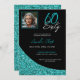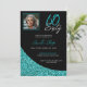 Elegant Black and Teal Glitter 60th Birthday Invitation