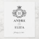 Classic Luxe Black and White monogram, wedding wine label set. Vintage inspired crest in royal style.
