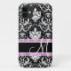 Elegant black and white damask with monogram Case-Mate iPhone case