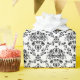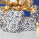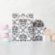 Elegant wrapping paper printed with a black damask pattern on a white background