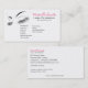 A chic and modern lash extension business card, perfect for beauty professionals, lash bar, microblading and lash extension services as well as makeup artists. The front features a modern, minimalistic yet striking illustration of elegant eyelashes, paired with clean black and pink typography for a professional yet feminine touch. The back includes all essential contact details and opening hours in a neat layout, ensuring practicality and style. This design exudes sophistication, making it ideal for lash technicians, beauty salons, or estheticians who want to leave a lasting impression.