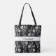 Elegant Black And White Floral Pattern Name Tote Bag.