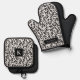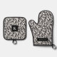 Elegant Black and White Leaves Pattern Oven Mitt & Pot Holder Set