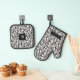 This elegant, stylish oven mitt and pot holder set features a pretty leaves pattern in black over a custom colour background (shown in white). Text templates are included for easy personalization. Makes a great gift for the chef or baker in your life!