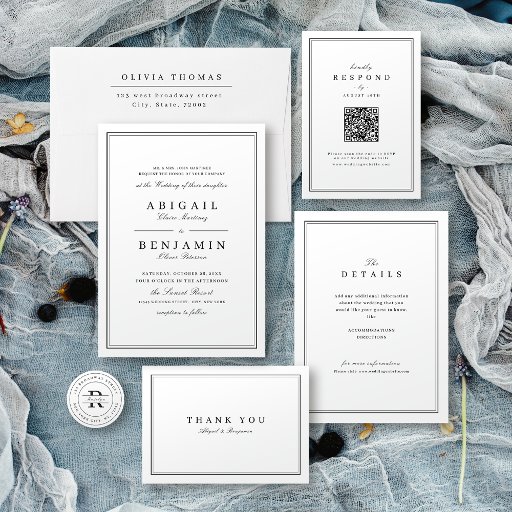 Elegant black and white minimalist design, simple and classy. Great save the date cards for modern classic wedding, vintage wedding and formal wedding.