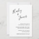 Modern wedding invitation featuring a simple design with your names in an elegant handwritten script at the top left and your event details in right alignment at the bottom right. All design elements are in black and white and may be changed in the design editing tool. The chic hand lettering adds a romantic touch to this minimalist design.